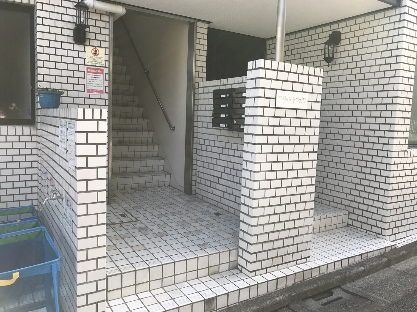 1983年に竣工された「フラットトクガワ」。白のタイル張りの外観で住環境と同じく落ち着いた生活を送れる環境です。